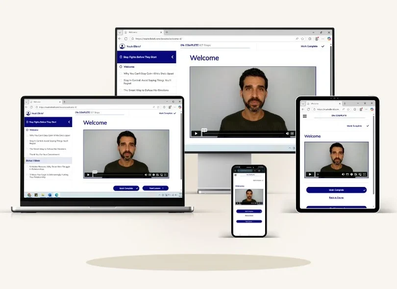 A focused, no-fluff 45-minute mini-course for smart, logical men who want to stop blow-ups before they happen and stay calm in the moment when she’s emotional.