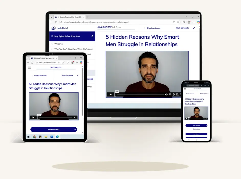 For lasting transformation, my full course goes much deeper into unwiring the root causes of 21 of the most common triggers smart men face in relationships.